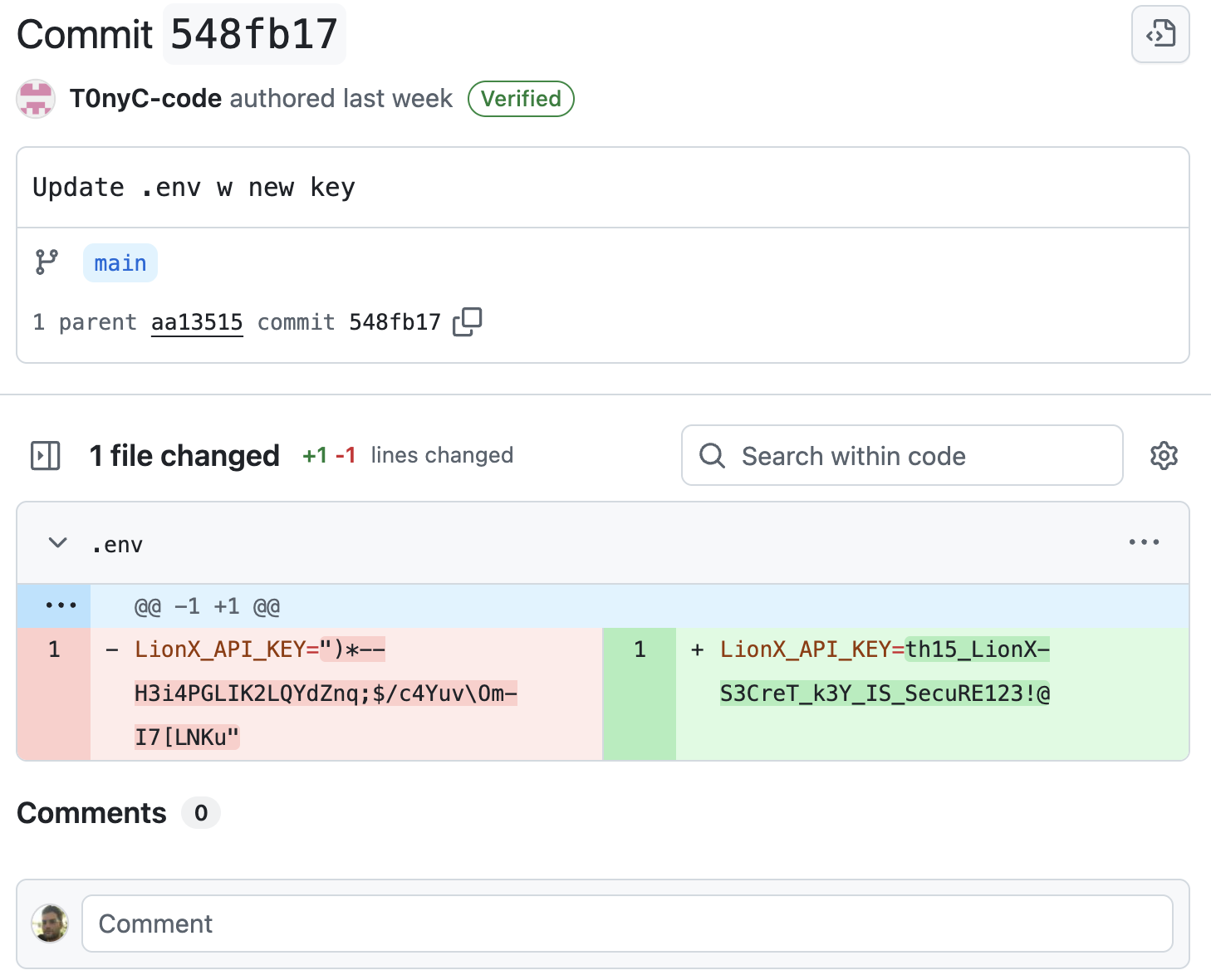 The repository can be found on GitHub and the secret key is included in an earlier commit: https://github.com/T0nyC-code/LionMind-GPT/commit/548fb17780bfa2ed6216fa29cb211f720c4669f0. Sending this key to the LLM revealed the flag.